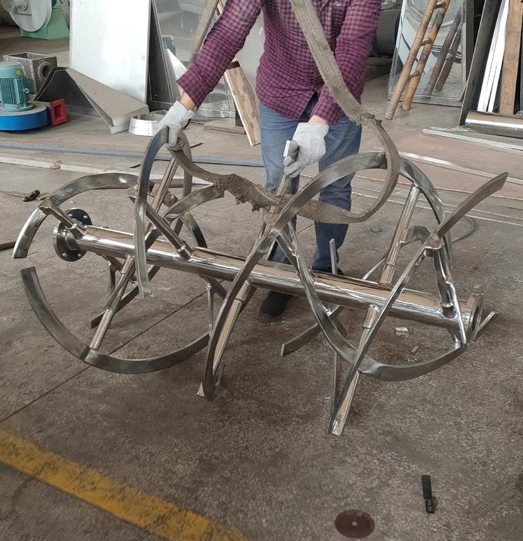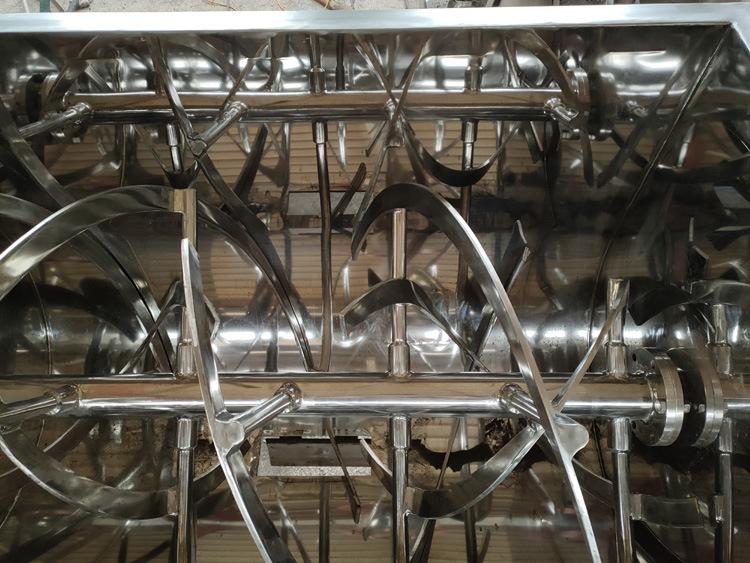 二、特點(diǎn): 螺帶混合機(jī)由混合槽、螺旋攪拌葉片和傳動(dòng)部件等組合而成,螺旋葉片一般做成二層,外層螺旋將物料從兩側(cè)向中央?yún)R集,內(nèi)層螺旋將物料從中央向兩側(cè)分流,使物料在混合槽內(nèi)形成對(duì)流混合。混合均勻度高:能使1:10000倍配比的物料均勻混合,尤其使對(duì)于比重特性較大的物料混合更顯其優(yōu)勢(shì)。混合速度快,效率高。比其它混料機(jī)效率提高6-10倍或更高。出料快,方便,通常2~5分鐘出完一批料。混合過(guò)程溫和,基本不被破壞物料的原始狀態(tài)。對(duì)物料無(wú)污染現(xiàn)象,該設(shè)備的攪拌機(jī)構(gòu)為整體式,安全可靠,所有棱角焊縫圓滑過(guò)渡,易清洗;潤(rùn)滑部部位均在桶體外,無(wú)滴油和磨屑物滲入物料,可密封操作,隔絕空氣中塵埃進(jìn)入物料。能耗小,裝載系數(shù)大。對(duì)廠房要求低,設(shè)備為臥式,且各種形式的驅(qū)動(dòng)裝置和出料位置可任意選擇,不受廠房高度,占地面積制約。設(shè)備運(yùn)轉(zhuǎn)平穩(wěn)可靠,易損件少,使用壽命長(zhǎng),維修方便操作簡(jiǎn)單。